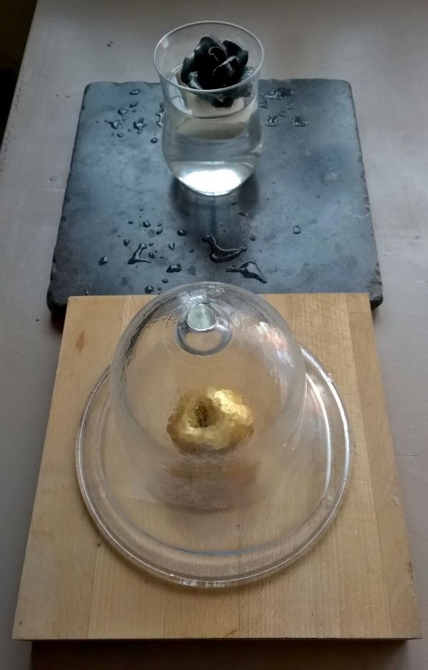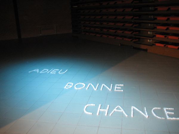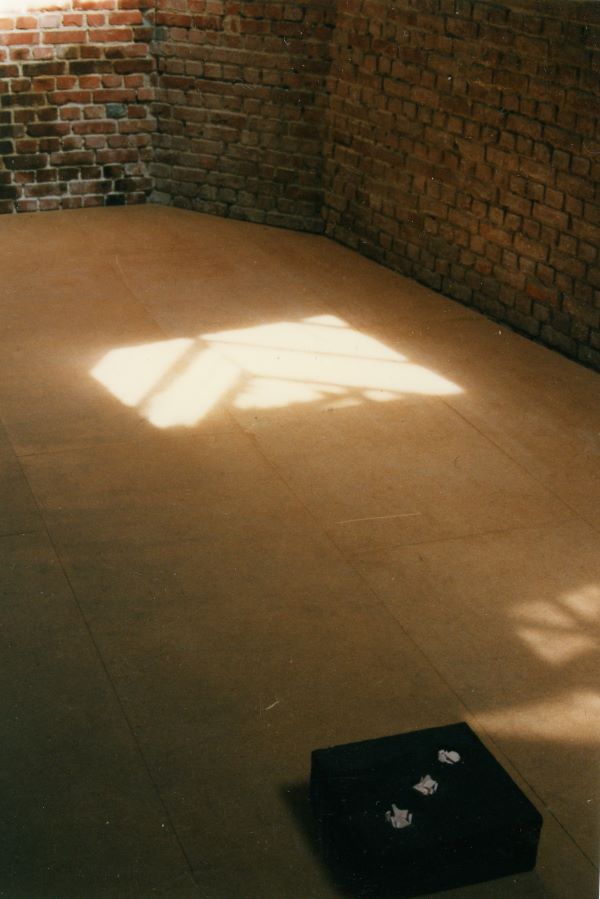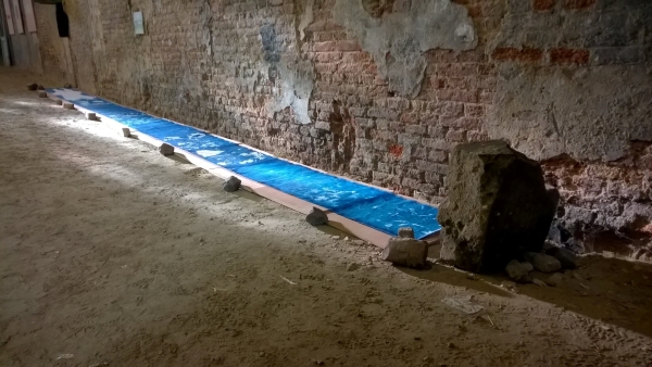 Installation d’objets poétiques, un cyanotype géant et photographies (Drongenhof Kapel, Gand)