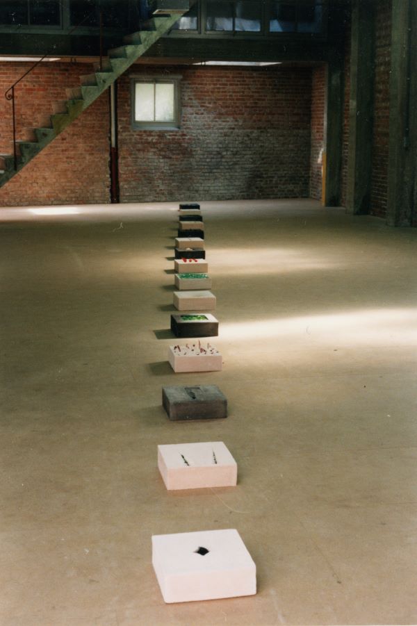 Une recherche sur la fragmentation/destruction des matériaux et la juxtaposition/reconstruction. Une installation en céramique contemporaine. Exposition Kleine Academie, Bruxelles.