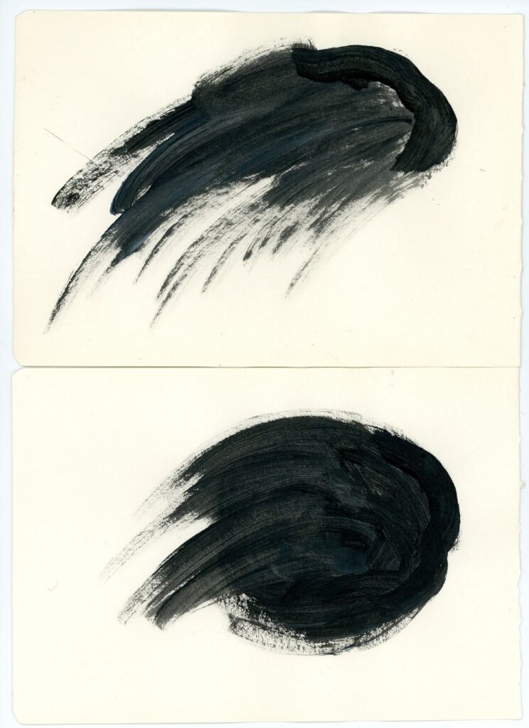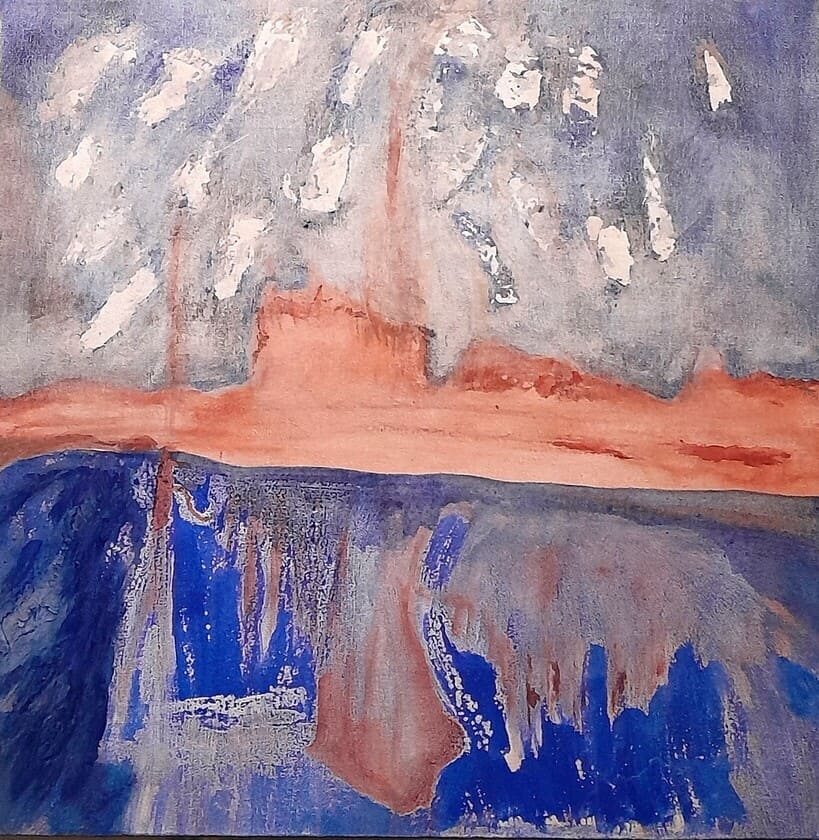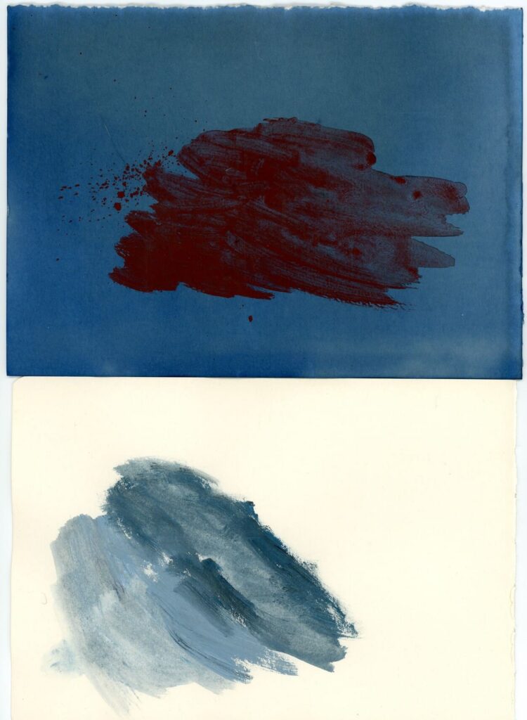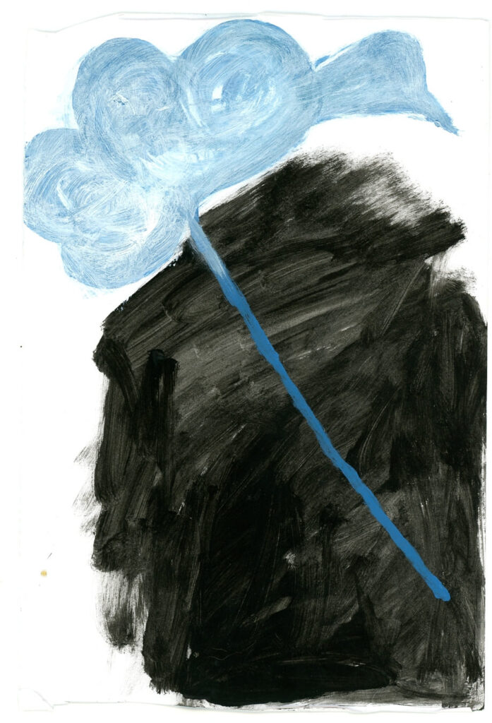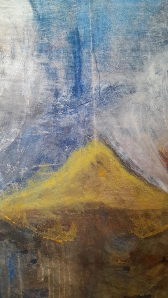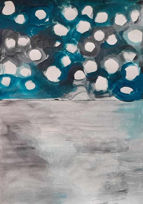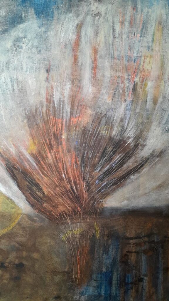 Les peintures de Lysiane Bourdon se trouvent à la limite de l’abstraction et de la figuration. Elles évoquent les éléments de la nature, les paysages, à travers des formes instinctives nées d’un geste, d’une couleur, d’une tache, et prolongées, alors consciemment, comme pour parfaire cet élan initial. Elle frotte, efface, griffe, superpose de multiples fines couches et parfois, accepte sans rien ajouter. Un animal est peut-être blessé. Un autre est debout sur une banquise. Un orage éclate. Une main se tend. Un oiseau est accroché comme un ballon. Un cygne est rouge. Il y a de la neige, pourtant elle n’aime pas la neige. Les techniques utilisées sont poreuses, mêlant anciens procédés de photographie, peinture à l’huile, tempera et acrylique.